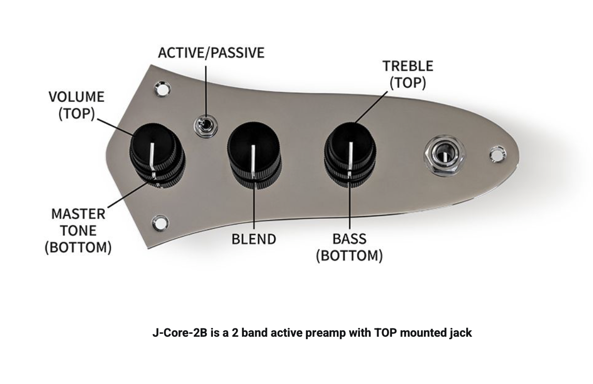 O pré-amplificador J-Core leva o consagrado Flexcore Onboard Bass Preamp a um novo nível — agora em um design drop-in para placa de Jazz Bass, sem complicações.